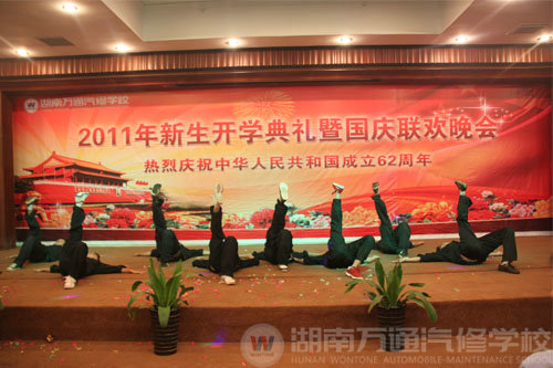 歡歌如海,禮贊祖國光輝歷程;豪情滿懷,祝福學(xué)校美好明天!中華人民共和國轉(zhuǎn)眼已走過了62個(gè)春秋,為了迎接華誕的到來,湖南萬通汽車學(xué)校于9月28日成功舉辦了2011年秋季開學(xué)典禮暨國慶晚會(huì)。湖南萬通汽車學(xué)校校長葛孝良,校長助理蔡賢滿、名譽(yù)校長陳齊雄共同出席了開學(xué)典禮,并與全體師生一同觀看了國慶晚會(huì)。
