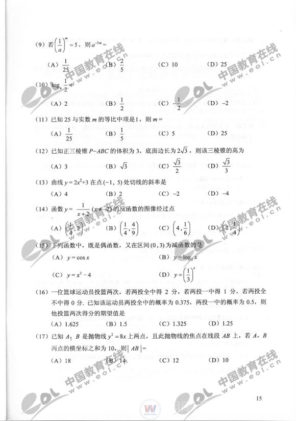 文章導(dǎo)讀:2011成人高考數(shù)學(xué)(理)試題及答案:高起點信息由成考網(wǎng)發(fā)布,更多2011成人高考數(shù)學(xué)(理)試題及答案