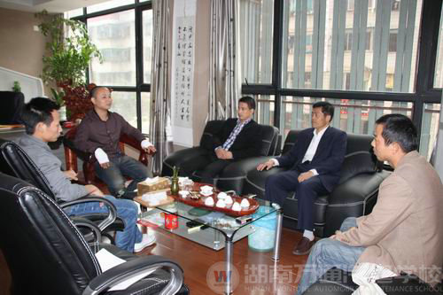 為及時(shí)了解畢業(yè)生的就業(yè)情況,更好地掌握畢業(yè)生在就業(yè)工作中存在的問(wèn)題及企業(yè)人才需求情況,10月21日下午,記者隨同湖南萬(wàn)通汽車(chē)學(xué)校校長(zhǎng)助理蔡賢滿(mǎn)、教學(xué)總督導(dǎo)陳齊雄及就業(yè)指導(dǎo)中心陸凱主任一行走進(jìn)了畢業(yè)學(xué)子就業(yè)單位新朋國(guó)際商務(wù)會(huì)所進(jìn)行了就業(yè)回訪(fǎng)。據(jù)悉,新朋國(guó)際會(huì)所是湖南省著名的太陽(yáng)膜代理商、汽車(chē)服務(wù)連鎖,于長(zhǎng)沙已開(kāi)設(shè)了多家分店,現(xiàn)有謝兵等上10位萬(wàn)通學(xué)子在此成功就業(yè)。