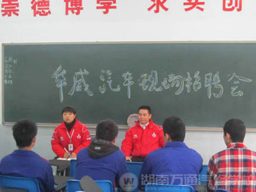 12月6號(hào)下午,湖南華威汽車(chē)服務(wù)有限公司在湖南萬(wàn)通汽車(chē)學(xué)校再次舉行專(zhuān)場(chǎng)招聘會(huì)。來(lái)自全能技修技師一班的同學(xué)參加了此次招聘會(huì)。
