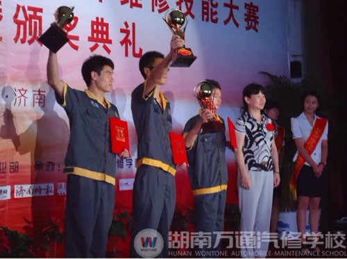倫敦奧運會上,湖南的奧運健兒們一展風采,目前在賽場上已斬獲兩金一銅。而在熱火朝天的第二屆“萬通杯”全國汽車維修技能大賽中,湖南萬通汽車學校的“湘越隊”選手們同樣表現(xiàn)出色。在教師組的比賽中,王國慶老師榮獲“發(fā)動機怠速不穩(wěn)故障診斷與排除比賽項目一等獎”,張紅宇老師取得“帕薩特節(jié)氣門的清洗與匹配項目三等獎”。老師們佳績連連,學子們亦獲得喜人成績。在學生組465變速器的拆裝檢修賽場上,朱炎獲得了二等獎的好成績,其他兩位選手黃騰和李可在桑塔納前輪剎車片的更換項目中亦奪得了三等獎的優(yōu)異成績。在大賽閉幕式上,湖南萬通汽車學校更是捧回了集團汽修事業(yè)部頒發(fā)的“新技術創(chuàng)新獎”。