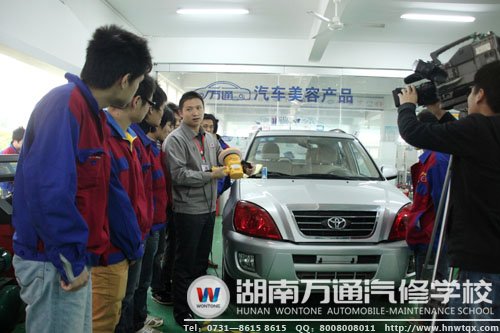 湖南教育電視臺拍攝組進萬通拍攝汽車美容專業(yè)