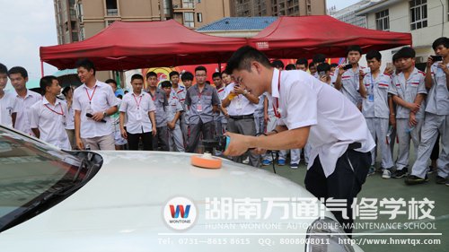 技能大賽 湖南萬通 火燒鍍晶湖南萬通汽修學校舉辦的第六屆技能大賽中,火燒鍍晶環(huán)節(jié),引眾多學生和老師圍觀。學生感嘆,新技術到底不一樣!