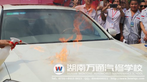如果只是這樣簡單的把鍍晶介紹給你,或許你不為所動,但是如果我們直接在你面前燒車、潑強酸,你又會作何感想呢?湖南萬通汽修學校利用學校第六屆技能大賽的機會,向學校的學生及老師們展示了“鍍晶”這一新技術。在比賽中穿插了“火燒鍍晶”的演示環(huán)節(jié),這次演示由余磊老師講解操作完成。精洗車后,從一級拋光到三級還原拋光,再到車漆鍍晶,到最后的點火,整個過程引來眾多學生及老師轉觀,且都拿出手機拍攝了整個過程。