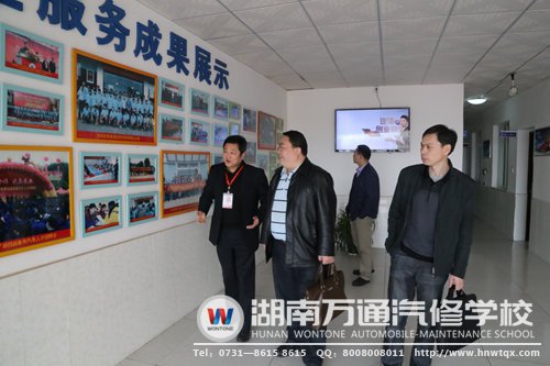 楊忠民副處長(zhǎng)一行在葛校長(zhǎng)的陪同下仔細(xì)參觀了學(xué)校汽車(chē)美容實(shí)訓(xùn)中心、汽車(chē)實(shí)訓(xùn)中心、汽車(chē)維修中心、數(shù)字多媒體化教學(xué)樓等實(shí)訓(xùn)場(chǎng)地,對(duì)學(xué)校的“理實(shí)一體化”的教學(xué)模式給予了充分肯定。在參觀過(guò)程中,楊忠民副處長(zhǎng)認(rèn)真翻閱了教學(xué)課本,詳細(xì)詢(xún)問(wèn)了創(chuàng)就業(yè)服務(wù)保障。楊忠民副處長(zhǎng)明確表示,湖南萬(wàn)通汽修學(xué)校是湖南省內(nèi)專(zhuān)業(yè)齊全,設(shè)備完善,服務(wù)優(yōu)質(zhì)的汽修職業(yè)培訓(xùn)學(xué)校,多年來(lái)為社會(huì)輸送了大量的汽修人才,培養(yǎng)了大量的高素質(zhì)高技能的“汽車(chē)醫(yī)生”,是退伍軍人培訓(xùn)汽修技能基地的首選。