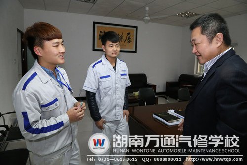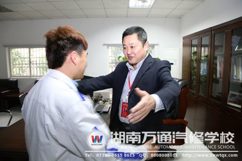 4月21日,有幾位學(xué)生在湖南萬通汽修學(xué)校校長辦公室和副校長辦公室緊張、徘徊。他們有一個(gè)別樣的想法,想與校長和副校長來一次“力量”的擁抱。