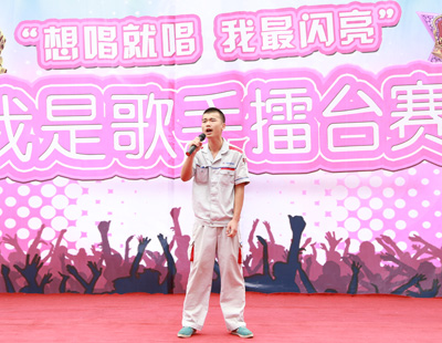 在教學(xué)部續(xù)主管的熱場下,開場十分熱烈,歡呼聲一潮高過一潮。接著,陽哲老師登上舞臺(tái)正式宣布“我是歌手,想唱就唱,我最閃亮的擂臺(tái)總決賽正式開式!”于是,8強(qiáng)選手接連著開唱起自己最拿手的歌曲,期間唱在共鳴之時(shí),大家不由自主地一起嗨唱,場面熱潮很是壯觀!