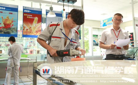 對(duì)于中專班的學(xué)子們而言,期末考試是一場半年度的汽修學(xué)業(yè)與技能的終極較量,也同之前的大專班一般,除了平時(shí)的汽修理論課程要考核之外,還有實(shí)訓(xùn)技能考試等著他們。在期末考試中,理論與實(shí)訓(xùn)是配套的,換而言之,有理論便會(huì)有實(shí)訓(xùn)考試??荚嚳颇恐饕ǎ旱妆P、發(fā)動(dòng)機(jī)、電器、汽車噴涂、汽車美容、汽車銷售、底盤快保等項(xiàng)目。