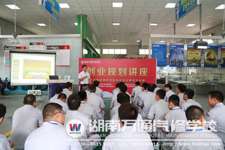 為了幫助汽車美容快修創(chuàng)業(yè)專業(yè)的學(xué)子們今后的創(chuàng)業(yè)之途更為暢通,湖南萬通汽修學(xué)校特此邀請康明博美容連鎖機構(gòu)谷剛琴總經(jīng)理,在8月20日上午開展了創(chuàng)業(yè)規(guī)劃講座。谷經(jīng)理作為汽車后行業(yè)高級講師、汽車美容店自主卡推行創(chuàng)始人、汽車美容行業(yè)資深經(jīng)理人、汽車美容流程考核體系創(chuàng)始人,在本行業(yè)從業(yè)十余年,憑借自身豐富的創(chuàng)業(yè)經(jīng)歷而深得業(yè)界好評。