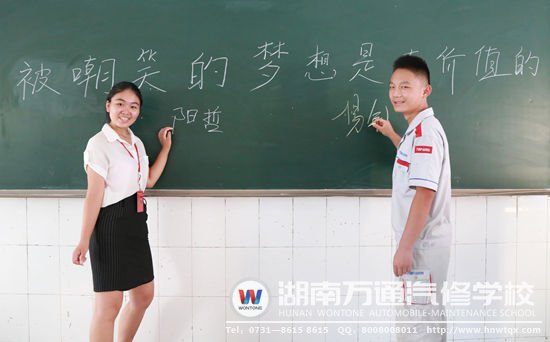 為什么會來湖南萬通學汽修?“選學校就要選最好的,寧遺勿濫!而在湖南萬通內,我最短的時間內系統的學好技能,拿到學歷,將來早日憑自己的雙手來打拼創(chuàng)事業(yè)!”17歲的他早已參加了學校組織的成人高考,快人一步,早早地獲取了大學文憑!