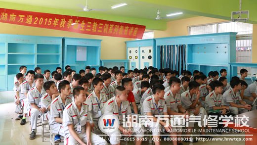 首先,本次授課的續(xù)峰老師就用了個極其幽默的開場白,“在座的同學們,為什么你們會來到湖南萬通學汽修技術(shù)?因為你們懂自己,深知自身的優(yōu)勢,動手操作能力是倍兒棒的,但若是因‘愛動手’,見人不爽就來一拳,那就攤上事兒了!”頓時,場內(nèi)笑翻天,當然,相信在湖南萬通良好的素質(zhì)教育與技能教學兼?zhèn)涞膬?yōu)良教學傳統(tǒng)下,這類實例是的出現(xiàn)率基本為0 !