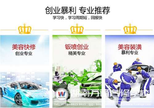 學好技能,用六天賺回學費?這可不是天方夜譚,在湖南萬通的中,很多學子都已是成功自主創(chuàng)業(yè)當老板了,學前是青蔥小伙,畢業(yè)后成為年薪百萬的成功人士!再者,學校完整的創(chuàng)業(yè)幫扶體系,將為想創(chuàng)業(yè)的學子們鼎力支持!開設專業(yè)多類,汽車美容快修創(chuàng)業(yè)、汽車鈑噴精英創(chuàng)業(yè)、汽車美容裝潢,三類合為“鈑噴美”。這么火爆金礦行業(yè)等你來挖,還在等什么呢?