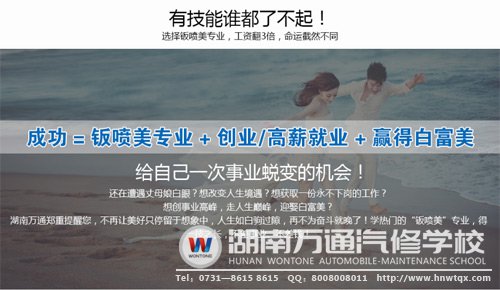 想改變?nèi)松秤??想獲取一份永不下崗的工作?想創(chuàng)事業(yè)高峰,走人生***,迎娶白富美?湖南萬通汽修學校鄭重提醒您,人生如白駒過隙,忽然而已!再不奮斗,等到未來一無所成再后悔就晚了!給自己一次人生蛻變的機會,來湖南萬通學“鈑噴美”專業(yè),獲一技之長,將來不差事業(yè)、不差錢!