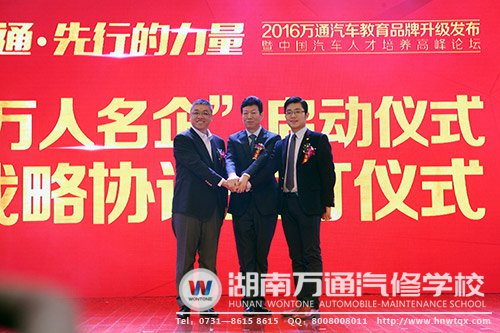 行業(yè)要發(fā)展,教育需先行。在發(fā)布會(huì)中,萬(wàn)通汽車教育攜手名企,開(kāi)創(chuàng)“萬(wàn)人名企”人才培養(yǎng)戰(zhàn)略合作模式。“萬(wàn)人名企”計(jì)劃是繼“千人創(chuàng)業(yè)工程”之后的又一促進(jìn)創(chuàng)就業(yè)的有力舉措,將在搭建高級(jí)汽車人才培養(yǎng)交流平臺(tái),打造校企創(chuàng)就業(yè)定向班方面發(fā)揮重要作用。