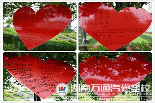 母愛是蜜糖,自始至終甜蜜著我們年輕的心,在母親節(jié)這個莊重的日子里,我們湖南萬通汽修學(xué)校的學(xué)子,用特別的方式表達(dá)了對母親的愛。大家在紅色愛心板上,紛紛寫上對母親的祝語,表達(dá)了自己對母親的感恩和愛。他們也呼吁大家抽出一點(diǎn)點(diǎn)時間,在今天給自己的母親打一通電話,說一句:我愛你。