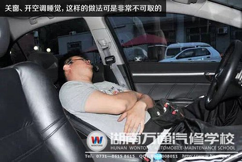 六、切不可開空調(diào)關(guān)窗在車內(nèi)睡覺。夏季等人時(shí)不少車主都有過開空調(diào)關(guān)窗在車內(nèi)睡覺的經(jīng)歷,此時(shí)車輛尾氣中的一氧化碳很有可能會(huì)通過空調(diào)系統(tǒng)的進(jìn)風(fēng)口進(jìn)入車內(nèi),一氧化碳中毒的危害大家都清楚吧?湖南萬通汽修學(xué)校提醒大家,一定要注意安全。