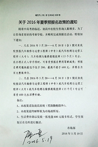 凡在2016年5月20日—6月30日期間來(lái)學(xué)校報(bào)讀汽車維修與運(yùn)營(yíng)工程師(中專)或汽車檢測(cè)與運(yùn)營(yíng)工程師(大專),汽車檢測(cè)與維修高級(jí)技師(15個(gè)月)等專業(yè)的學(xué)子,可以享受600元生活費(fèi)補(bǔ)助。