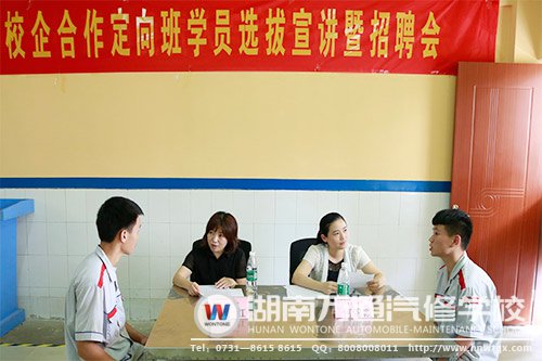 如雷貫耳的知名企業(yè)能主動的伸出橄欖枝,萬通學子們怎能不心動起來?于是,眾多學子們紛紛地踴躍積極報名參加現(xiàn)場面試,而作為創(chuàng)就業(yè)指導中心的負責人甘瓊主管,也熱心地為學子們進行輔導。“我相信,這次招聘會也許是在座眾多學子們的第一次面試,大家要調節(jié)好心態(tài),拿出最佳的精氣神,來全力以赴的對待!”甘主管鼓勵大家。選拔會開始,國合快車何經理發(fā)言道:“本次能與湖南萬通汽修學校聯(lián)合辦學,感到十分榮幸,同時也感謝在場眾多的優(yōu)秀學子們能選擇國合快車,今天希望我們能以朋友的立場,面對面暢所欲言,以后能有機會建立起親密伙伴關系,大家共成長!”
