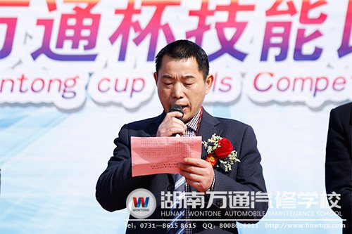 學(xué)校校長潘太煌致開幕詞:“本次汽修技能大賽不僅是汽修學(xué)子大展身手的絕佳平臺,也是湖南萬通理實(shí)一體化教學(xué)成果的一次大檢閱。湖南萬通汽修學(xué)校作為汽修后市場的專業(yè)人才培養(yǎng)基地,一直致力于為行業(yè)培養(yǎng)集知識、技術(shù)、能力、素養(yǎng)四位一體的全新創(chuàng)新型汽修精英。本次大賽的舉辦,將有效提升社會對汽修行業(yè)的認(rèn)知度,推廣汽車維修新技術(shù)、新理論。希望同學(xué)們發(fā)揮自己所學(xué)知識不畏困難,取得佳績!”
