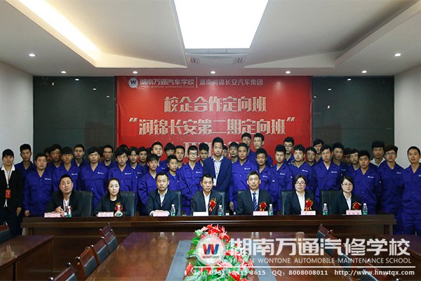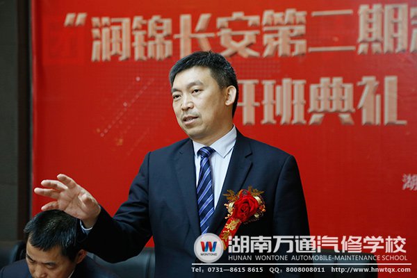 潤錦長安整車事業(yè)部總經(jīng)理劉厚學(xué)、總經(jīng)理助理李艷、潤錦整車事業(yè)部綜合主管賀秋麗、湖南萬通校長潘太煌及校方相關(guān)領(lǐng)導(dǎo)、以及潤錦長安班第二期全部學(xué)生等出席了此次開班典禮。
