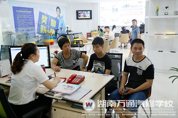 “孩子剛剛考試完,就帶他來看看學(xué)校,早為孩子的將來打算,做好準(zhǔn)備。雖然成績還未出,但是孩子特別喜歡汽車,想學(xué)汽修,而且現(xiàn)在并不是說上大學(xué)就是唯一出路了,我們?cè)敢夂⒆觼砩下殬I(yè)學(xué)校,學(xué)汽修技術(shù)。來之前,我們也了解過湖南萬通,教學(xué)、管理、師資、就業(yè)我們都很滿意。這不,今天就帶孩子來了,早日解決了孩子的問題,我們也就放心了。”一位前來咨詢的家長說道。