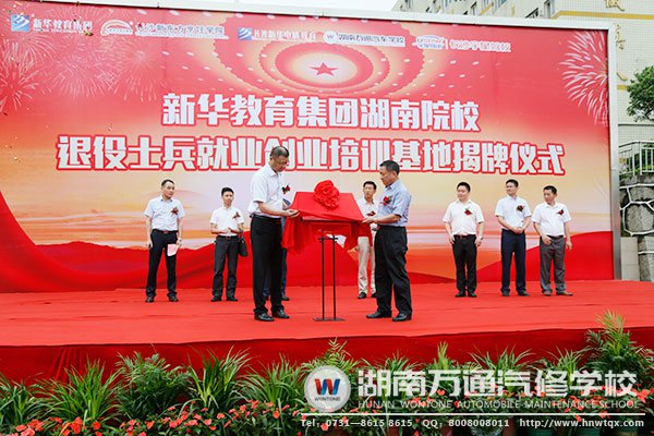 6月15日上午,新華教育集團(tuán)湖南院校退役士兵就業(yè)創(chuàng)業(yè)培訓(xùn)基地揭牌儀式隆重舉行。湖南省民政廳巡視員李勁夫、新華教育集團(tuán)對(duì)外合作部部長(zhǎng)張宏、中國(guó)退役士兵就業(yè)創(chuàng)業(yè)服務(wù)促進(jìn)會(huì)湖南代表處副主任、湖南省退役士兵就業(yè)創(chuàng)業(yè)服務(wù)促進(jìn)會(huì)副理事長(zhǎng)兼秘書長(zhǎng)楊澤定、湖南省民政廳退役士兵安置處處長(zhǎng)楊忠民、長(zhǎng)沙市民政廳退役士兵安置處處長(zhǎng)鄒煉、湖南省退役士兵就業(yè)創(chuàng)業(yè)服務(wù)促進(jìn)會(huì)會(huì)員部部長(zhǎng)肖帥、新華教育集團(tuán)湖南萬(wàn)通汽修學(xué)校校長(zhǎng)潘太煌、新華教育集團(tuán)長(zhǎng)沙新東方烹飪學(xué)院院長(zhǎng)張先清、新華教育集團(tuán)長(zhǎng)沙新華電腦學(xué)院院長(zhǎng)蔣紅健等各位領(lǐng)導(dǎo)蒞臨現(xiàn)場(chǎng)參與儀式。