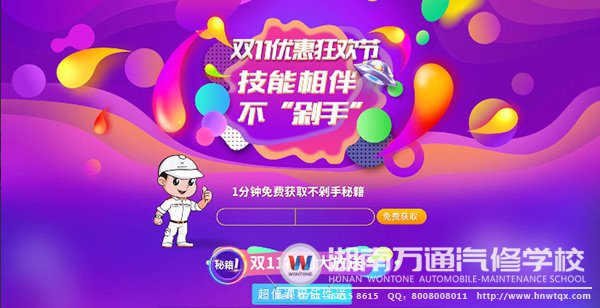 開創(chuàng)2017最大力度減免優(yōu)惠,一年一次,不可錯(cuò)過,就是這么任性!如此,選擇湖南萬通汽修學(xué)校,學(xué)一技之長(zhǎng),你離你夢(mèng)想中的高薪人生更近了,雙十一不用再怕剁手啦。