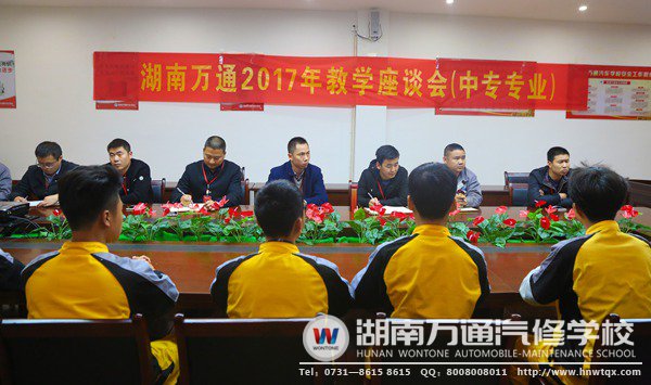 為了貫徹教育建設方針,提高教育質量,促進教師與學生的交流,湖南萬通汽修學校召開了“教學座談會”。學校教務處各級領導層出席了此次會議,并且召集了學校各個班的學生代表參加此次座談會。