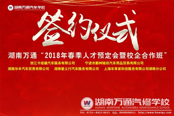 湖南萬通汽修學(xué)校為了更好的為學(xué)子創(chuàng)造就業(yè)條件,服務(wù)學(xué)子就業(yè),為企業(yè)培養(yǎng)優(yōu)秀人才,增進(jìn)學(xué)子與用人單位的彼此了解,將于12月8日,舉辦2018年春季大型人才預(yù)定會(huì),此次現(xiàn)場(chǎng)將揭牌近五家校企定向班。校企聯(lián)手培養(yǎng)汽修精英,學(xué)生畢業(yè)通過考核即就業(yè)。