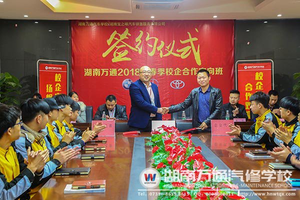 湖南萬通汽修學(xué)校不斷發(fā)展建設(shè)的同時,與各大名企合作辦學(xué),強(qiáng)強(qiáng)聯(lián)手,開設(shè)定向班,引進(jìn)企業(yè)先進(jìn)的汽車服務(wù)理念和新技術(shù),為學(xué)生搭建實(shí)現(xiàn)夢想的橋梁。名企定向班簽約儀式的成功舉辦,也標(biāo)志著湖南萬通校企合作邁向了更實(shí)質(zhì)性的階段,學(xué)子們的實(shí)習(xí)、就業(yè)等各個方面得到了更高層次的發(fā)展空間。