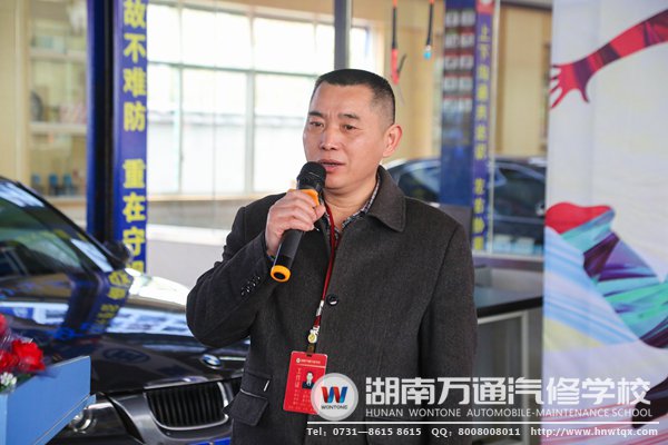 專業(yè)教師代表從專業(yè)的角度向?qū)W生們解讀了汽修行業(yè)的前景,他鼓勵同學(xué)們,要對我們的行業(yè)有信心,要相信在崗位上的投入與產(chǎn)出一定是成正比的,要付出才能有回報。緊接著,續(xù)主任殷切叮嚀同學(xué)們,畢業(yè)后所需要面臨的社會環(huán)境遠(yuǎn)遠(yuǎn)比在校復(fù)雜,希望同學(xué)們繼續(xù)發(fā)揚艱苦奮斗的精神,把在萬通養(yǎng)成的良好習(xí)慣,繼續(xù)發(fā)揚下去,貫徹到整個人生!