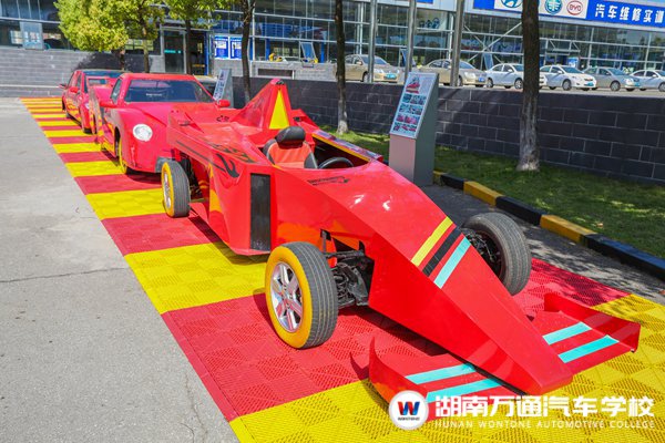 五月,湖南萬通學子費時2個月完成了兩臺F1賽車改裝。從整車漆面打磨、整車膩子施涂到座椅安裝、輪轂改裝,全由學子親自操刀。