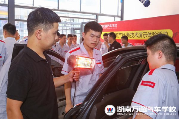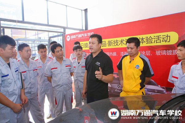 “同學們,你們知道如何分辨汽車玻璃膜的好壞嗎?”逐日膜業(yè)公司代表首先將問題拋給現場學生,“看它的清晰度!”“柔軟度!”在場的美容創(chuàng)業(yè)班學生們立即踴躍回答。9月14日,逐日膜業(yè)公司代表帶著新產品新技術來到了湖南萬通汽車學校,給學生們上了一堂別開生面的體驗課。