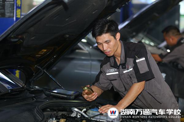 參與大賽的人員主要分為兩部分:評(píng)委會(huì)和參賽選手,數(shù)位評(píng)委均是擁有多年維修保養(yǎng)經(jīng)驗(yàn)的行業(yè)大咖,而湖南萬通的周老師,因在汽車維修方面的口碑和專業(yè)性俱佳,受到了佳誠車業(yè)的邀請(qǐng),作為評(píng)委會(huì)一員參與此次活動(dòng)。參賽選手均為佳誠車行的精英技師,在數(shù)十名參賽者中,有三位熟悉的身影,他們畢業(yè)于湖南萬通,因?yàn)榧寄芫浚A得了參與“佳誠杯”的比賽資格,其中湖南萬通優(yōu)秀畢業(yè)學(xué)子謝天才最終獲得了大賽冠軍。