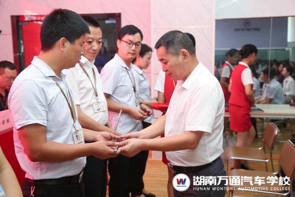 “教桿就是我們新時代的戒尺,督促每個老師用心職教,嚴于律己,育才達人,成為學生的好榜樣,也是我們提高教學質(zhì)量,建設(shè)好校風、教風、學風的督促。“湖南萬通汽車學校潘校長在給學校老師發(fā)放教桿的時候語重心長的說道。