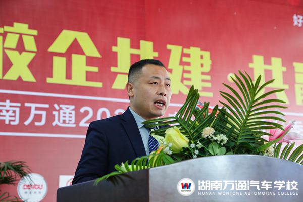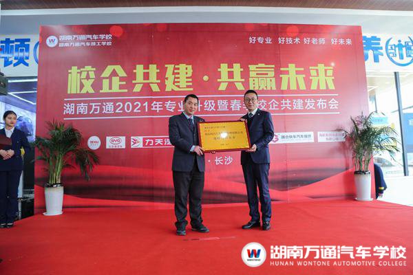 湖南萬通更以此次發(fā)布會為契機,多渠道強力推進校企合作。會上湖南萬通汽車學校校長潘太煌為多家優(yōu)質企業(yè)進行了授牌,達成校企共建共識,為學生搭建了畢業(yè)即就業(yè)快車道。潘校長說:“發(fā)展職業(yè)教育事業(yè),要完善職業(yè)教育和培訓體系深化產(chǎn)教融合、校企合作。踐行職業(yè)教育就是就業(yè)教育的使命,我們有責任,有義務去為國家培育優(yōu)秀的職業(yè)技能復合型人才,推動我國經(jīng)濟的發(fā)展。”