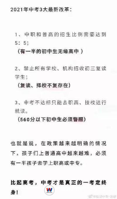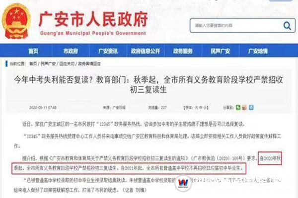 當然,有人會說:今年沒考好,那就復讀一年,明年再戰(zhàn)!可現實卻是:復讀?不行,不允許!2019年,寶雞市、廣安市等全國多地教育局就下發(fā)緊急通知,要求全市所有公、民辦初中學校、普通高中、校外培訓機構嚴禁招收初三復讀生。