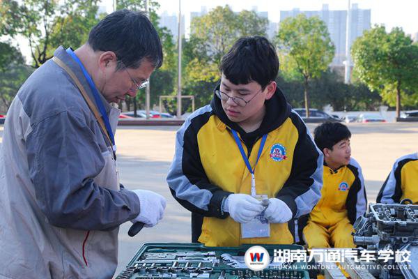 在數(shù)小時的比賽中,參賽隊(duì)伍的選手分工明確、拆裝順序合理、工具選用得當(dāng)、零件擺放有序。在汽車故障診斷環(huán)節(jié),學(xué)生對故障現(xiàn)象分析到位、診斷思維敏捷、思路清晰。校區(qū)負(fù)責(zé)人彭老師說道:“學(xué)校每年都會舉行技術(shù)爭霸賽,比如蒙眼拆裝啟動機(jī)比賽、新生基本技能PK賽、發(fā)動機(jī)拆裝比賽、輪胎拆裝比賽等等各項(xiàng)目模塊都會開展競賽,以賽促學(xué),以賽促教,提升教學(xué)質(zhì)量。”