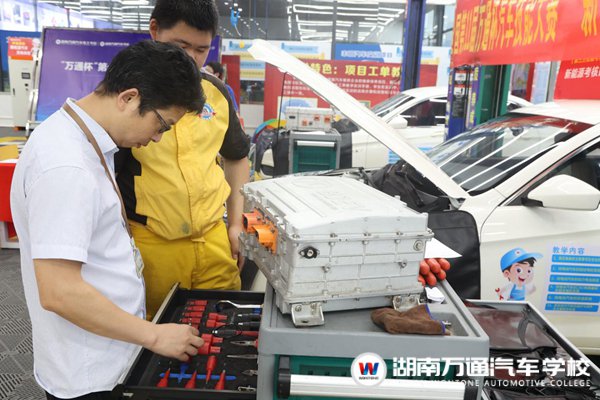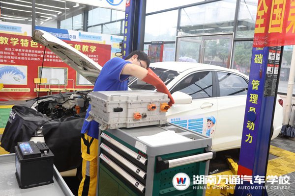 湖南萬通汽車技工學(xué)校汽車新能源專業(yè)學(xué)子正在實訓(xùn)