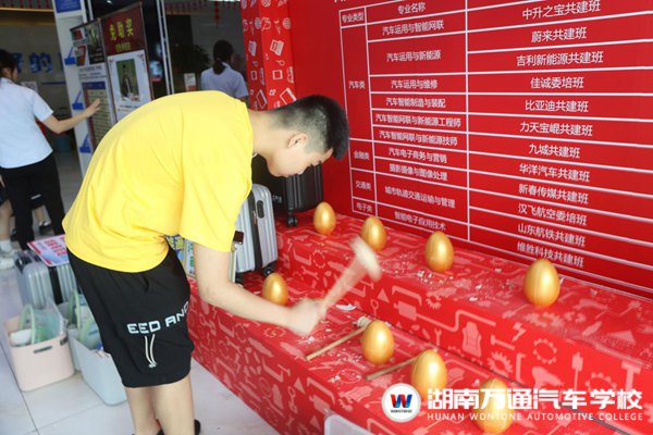 “恭喜學(xué)弟砸到藍(lán)牙耳機(jī)”、“恭喜學(xué)弟砸到充電寶”、“恭喜學(xué)妹獲得定制款品牌行李箱”……這次入學(xué),學(xué)校還為萌新們準(zhǔn)備了豐富的砸金蛋送“入學(xué)禮”的活動(dòng),學(xué)長(zhǎng)學(xué)姐們一一為萌新們送上入學(xué)禮和祝福。