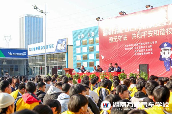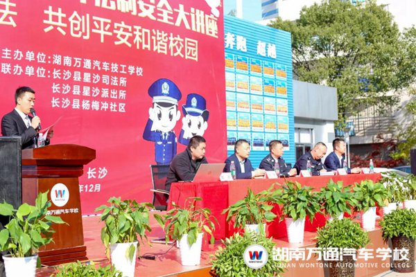 此次講座特邀長沙縣司法局星沙司法所所長龍威、長沙縣公安局星沙派出所王志平、長沙縣場梅沖社區(qū)綜治專干郭波,此外湖南萬通汽車學校校長助理張助、學生處負責人楊主任等上級部門領導共同出席。