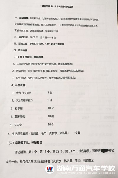 3、線上轉(zhuǎn)發(fā)贏禮包:活動期間,關(guān)注“湖南萬通汽車學(xué)校”微信公眾號,轉(zhuǎn)發(fā)【湖南萬通2022年春季招生簡章】文章至朋友圈,并獲贊18個,將朋友圈點贊截圖私發(fā)給微信后臺大萬,將獲得神秘禮品一份。