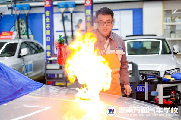 大家或許見過汽車燃燒,但是被大火燃燒之后的汽車漆面卻毫發(fā)無損,這到底是為什么嗎?湖南萬通2022年汽車技術(shù)求真課堂上,專業(yè)老師帶著22級新生們“玩”起了火燒奔馳!