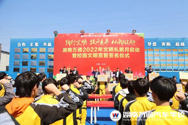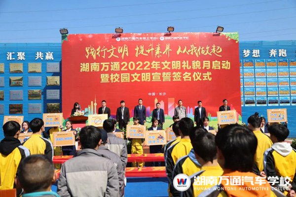 春風拂煦,萬物崢嶸。文明禮儀是我們中華民族的優(yōu)良傳統(tǒng),也是我校一直秉承的優(yōu)良作風。3月8日,湖南萬通組織全體師生開展了“踐行文明,提升素養(yǎng),從我做起”文明禮貌月啟動暨校園文明宣誓簽名儀式。