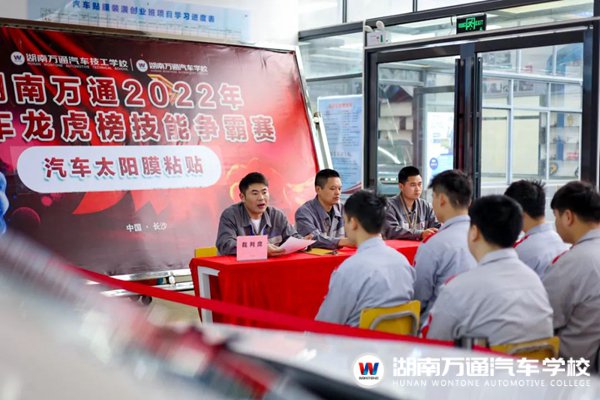 本次競賽的項目是汽車玻璃貼膜,同學(xué)們要在規(guī)定時間內(nèi)完成精裁太陽膜、烤膜、貼膜等內(nèi)容,裁判老師將根據(jù)競賽流程對同學(xué)們進(jìn)行考核評分。