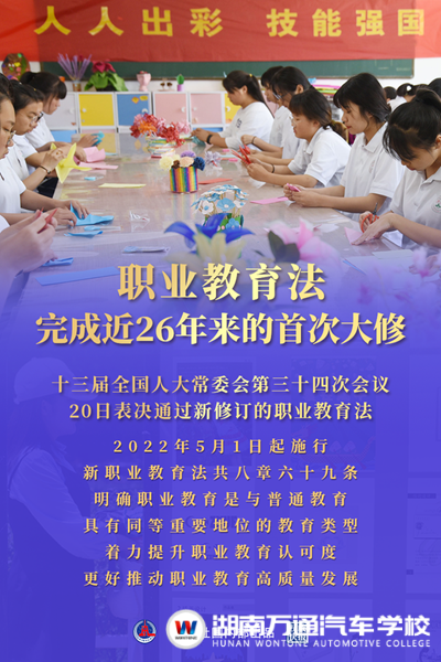 新修訂的《中華人民共和國(guó)職業(yè)教育法》已于2022年5月1日起正式施行,新職教法明確了職業(yè)教育是與普通教育具有同等重要地位的教育類(lèi)型,著力提升職業(yè)教育認(rèn)可度,深化產(chǎn)教融合、校企合作,完善職業(yè)教育保障制度和措施,更好地推動(dòng)職業(yè)教育高質(zhì)量發(fā)展。