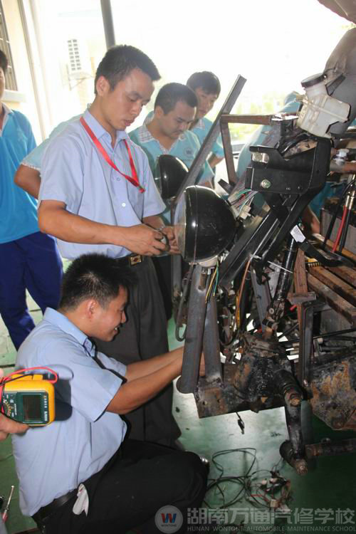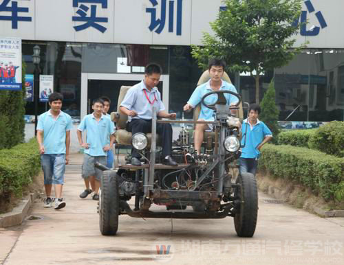 什么是“萬通和諧號(hào)”?湖南萬通汽修學(xué)校教務(wù)管理中心負(fù)責(zé)人告訴筆者,“萬通和諧號(hào)”是學(xué)校針對(duì)喜愛汽車組裝的學(xué)子推出的一個(gè)汽車整車組裝與維修實(shí)訓(xùn)計(jì)劃,是湖南萬通汽修學(xué)校首輛由學(xué)生主導(dǎo)老師輔導(dǎo)改裝的汽車。該實(shí)訓(xùn)計(jì)劃主要是由學(xué)生在原有汽車底盤車架的基礎(chǔ)上進(jìn)行改裝調(diào)試,對(duì)車輛的各模塊部件進(jìn)行檢修和加裝,將原有車載部件進(jìn)行檢測(cè)和維護(hù),對(duì)有磨損不能正常使用的零部件,學(xué)生按照同型號(hào)發(fā)動(dòng)機(jī)機(jī)件,利用學(xué)?,F(xiàn)有實(shí)訓(xùn)設(shè)備資源進(jìn)行拆裝替換,為車輛鋪設(shè)專用線路,學(xué)生自主焊接起車輛駕駛操作平臺(tái),盡量實(shí)現(xiàn)經(jīng)濟(jì)成本“零投入”的一個(gè)改裝計(jì)劃。