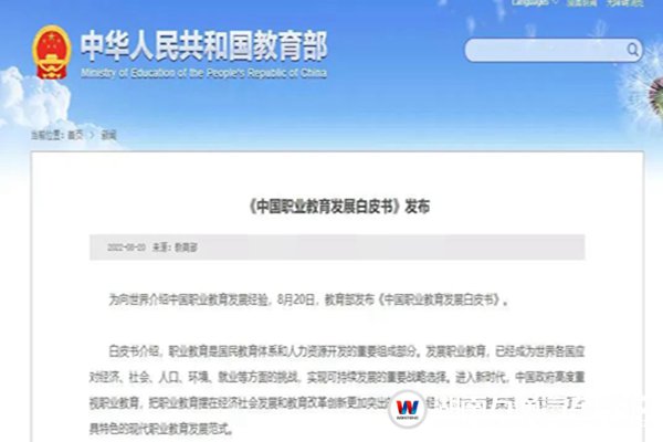 白皮書介紹,職業(yè)教育是國民教育體系和人力資源開發(fā)的重要組成部分。