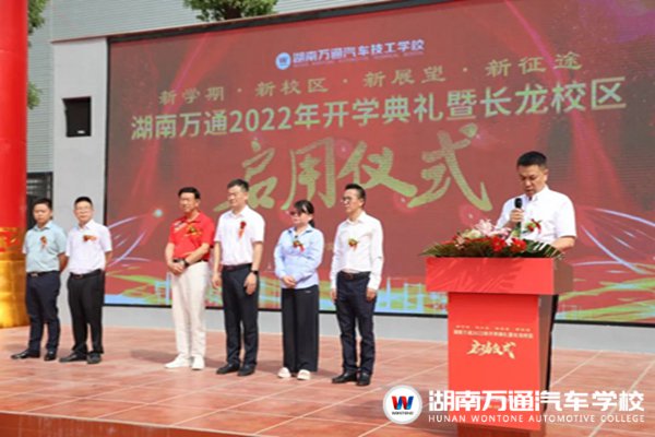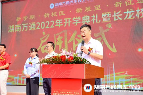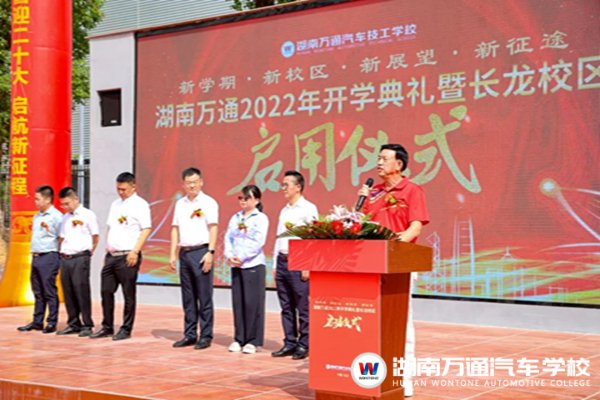 清風(fēng)送爽金秋美,楓葉流丹碩果香。9月26日上午,湖南萬通隆重召開湖南萬通2022年開學(xué)典禮暨長(zhǎng)龍校區(qū)啟用儀式,湖南省民政廳原副廳長(zhǎng)、巡視員、湖南省社會(huì)組織黨工委副書記李勁夫、湖南萬通汽車技工學(xué)校校長(zhǎng)李迎春、 長(zhǎng)沙市汽車維修行業(yè)協(xié)會(huì)會(huì)長(zhǎng)曹軍、 湖南九城集團(tuán)總經(jīng)理伍學(xué)農(nóng)、 湖南國(guó)合汽車服務(wù)管理有限公司總經(jīng)理鄧建軍、湖南佳誠(chéng)車業(yè)總經(jīng)理郝曉勇、湖南萬通汽車學(xué)校校長(zhǎng)助理張偉等領(lǐng)導(dǎo)出席儀式為新校區(qū)啟用剪彩。