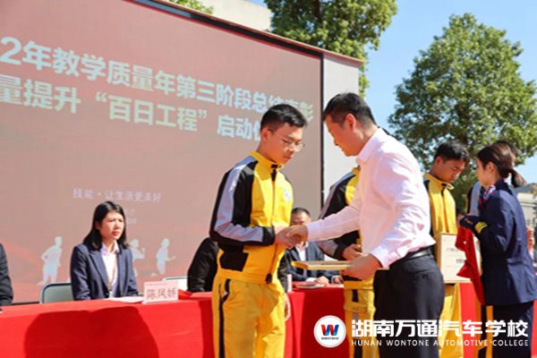 湖南萬通汽車技工學(xué)校李校長、校長助理張助、校區(qū)主任葉主任、學(xué)??荚嚳甲C中心負(fù)責(zé)人陳主任、學(xué)生處負(fù)責(zé)人楊主任、教務(wù)處負(fù)責(zé)人張主任、創(chuàng)就業(yè)指導(dǎo)中心池主管等校領(lǐng)導(dǎo),與全校師生出席本次典禮,見證榮耀時刻。